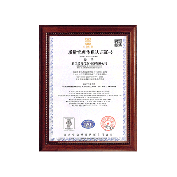 公司一直以來嚴格執(zhí)行ISO9001質量體系和ISO14001環(huán)境管理體系標準,建立了完備的科研、開發(fā)、生產(chǎn)、銷售服務體系。公司是浙江省門業(yè)協(xié)會會員單位,江山門業(yè)協(xié)會理事單位,中國木材與木制品流通協(xié)會會員單位,江山市消防協(xié)會副會長單位。
